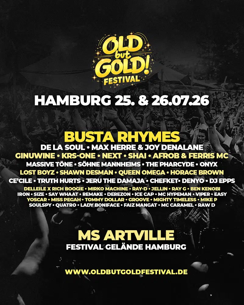 Die Hamburger Ausgabe des Old but Gold Hip Hop Festivals ist das Flaggschiff der Reihe – 2026 erstmals zweitägig auf dem MS Artville Festival Gelände.