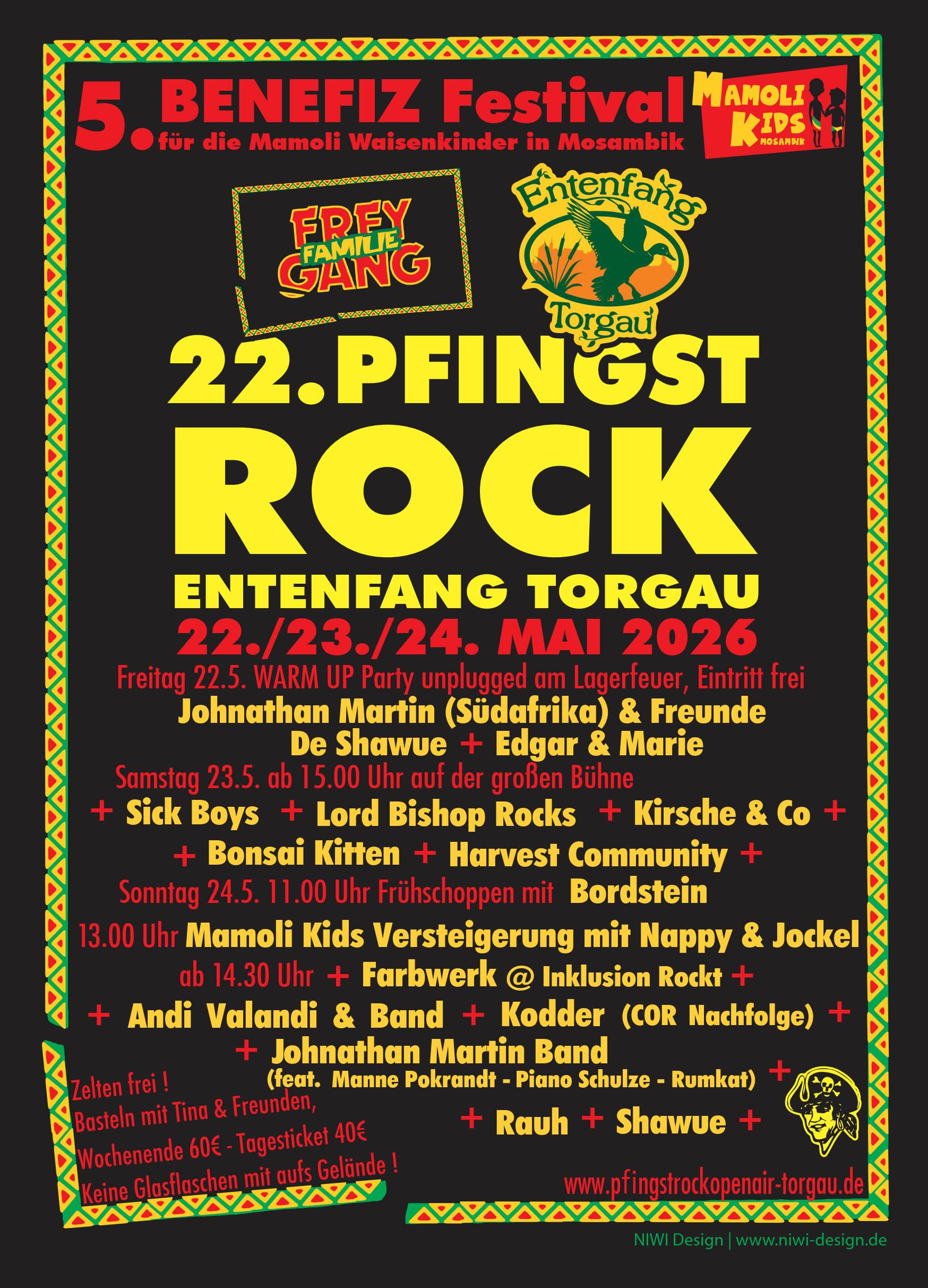 Kleines familiäres Benefiz - Musikfestival, entstanden aus dem Freygang-Pfingstrock-Open-Air Torgau Entenfang, mit Versteigerung zu Gunsten der Kinder im Waisenheim Mamoli-Kids in Mosambik.