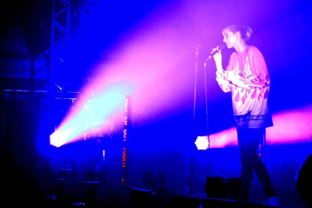 Bilderbuch - Power-Stimmen im EinsatzHach, das nenne ich Unterhaltung. Kaum betritt Frontmann Maurice Ernst die Bühne, möchten wir ihn nicht aus dem Auge lassen. So geht er in seiner Musik auf und performt live von Punk, Indie über Pop, Elektro-Pop, Hip Hop bis hin zu Gospel und Rock. Experimentierfreudig, die Österreicher Jungs. Feine Gitarren-Solos und eine stimmgewaltige Background-Begleitung, die auch echt ordentlich rappen kann, machen den bunten Mix perfekt. (Bild rechts: Power-Stimmen im Einsatz)
