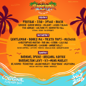 Vom 3. bis 5. Juli 2026 versammelt Europas größtes Reggae-Festival wieder die Freunde des Reggae auf dem Gelände am Fühlinger See in Köln. Das SummerJAM Festival 2026 hat heute sein komplettes Line-up veröffentlicht und setzt damit auf eine der vielseitigsten Aufstellungen in der Festivalgeschichte. Tickets gibt es noch im Vorverkauf aber die aktuelle Preiskategorie ist fast ausverkauft.